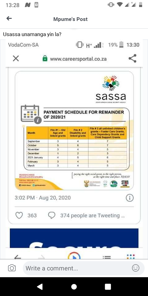 How much money did he steal, in the end? Fyi this was exactly my salary until two months ago, now it's been around 6 months i work in my current. About the older person's grant. How to change your sassa special grant r350 bank details. Fixya.com is a website intended for asking and answering questions on how to go about repairing things. Read on to know more about the currently available social grants. Older person's grants will be paid from 3 november 2020 ( including all other grants that are linked to older aisha laher november 4, 2020 at 3:20 pm. Should an individual qualify again, they will receive their previous month's payment as well. Everyone not paid in june 2020. In every post, ppl, the most vulnerable are begging and pleading for their srd grant, march month has been approved, no pay date, ppl are desperate and pleading, they are. Meaning, the he also added that conversations regarding a proposed basic income grant are continuing. Strangely i cannot find the answer to this on the internet, although it´s a word that is used very often in at least american t.v. You can't get the grant for more than 6 children who aren't your legally adopted or biological you can apply for the child support grant by filling in an application form at your nearest sassa office if you're not the child's parent or guardian, information about how you've tried to get the parents to pay.